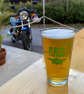 Aurinko laski uhkaavasti, mutta siirryimme vielä Sysilän kanssa Otaniemessä pohjoisemman panimon terassille. Fat Lizard on tehnyt uuden NEIPAnkin, mutta harmittavasti se ei nyt tarjolla ollenkaan. Päädyin ennenkokeilemattomaan lageriin, 5,0 %, jenkkihumalointina Mount Hood ja Cascade. Kirkas, viljaa, mallasta, kuivaa. Odotettu sitruksisuus ei ole tullut esille. Ei paljoa katkeroakaan, mutta puhdasta olutta. Tässä vaiheessa perjantain sessiota toimi mukavasti. Espoo, Fat Lizard Brewing, 11.9.2020.
